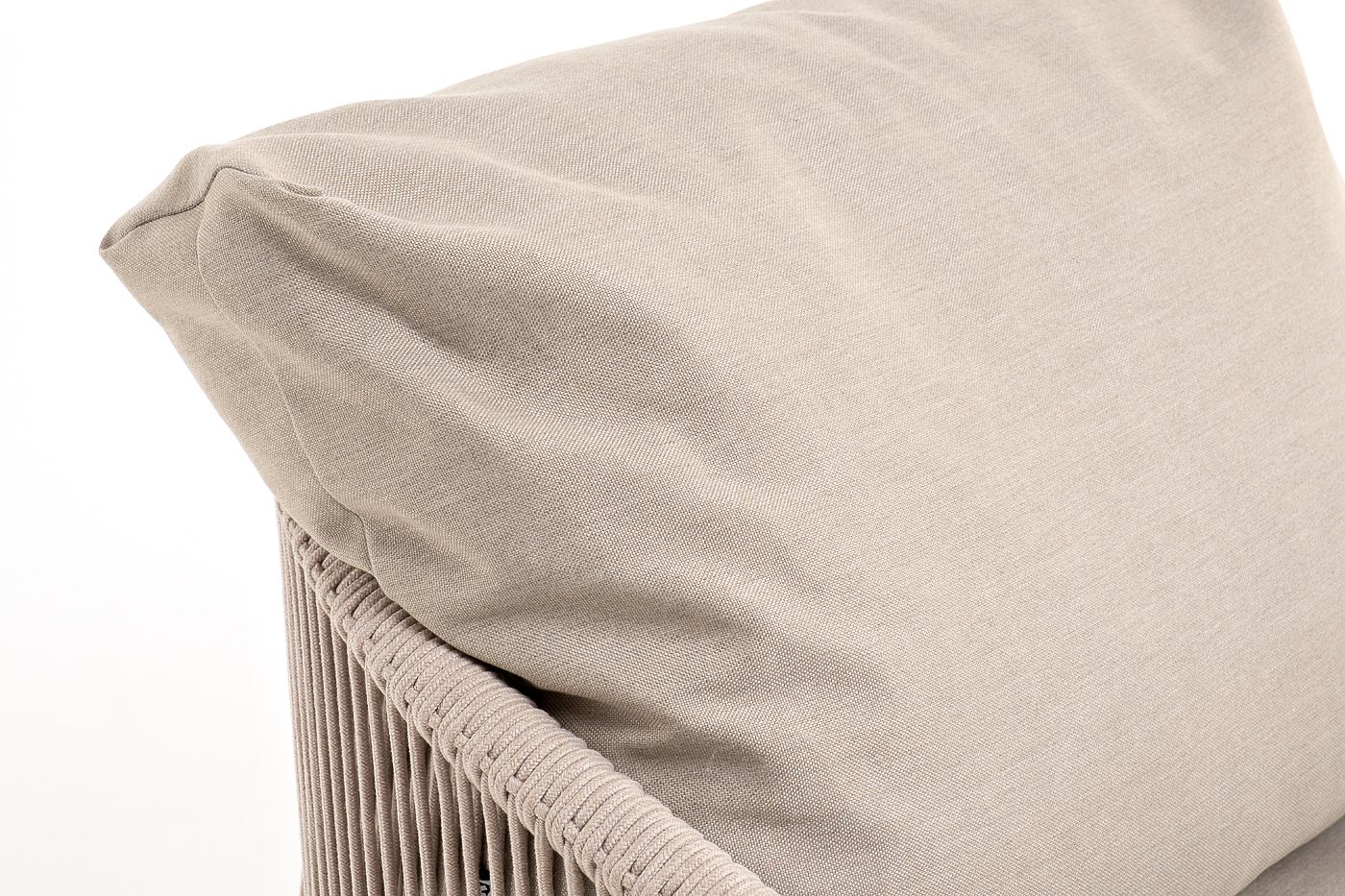 "Верона" кресло плетеное из роупа, каркас алюминий белый муар, роуп бежевый круглый, ткань бежевая 052